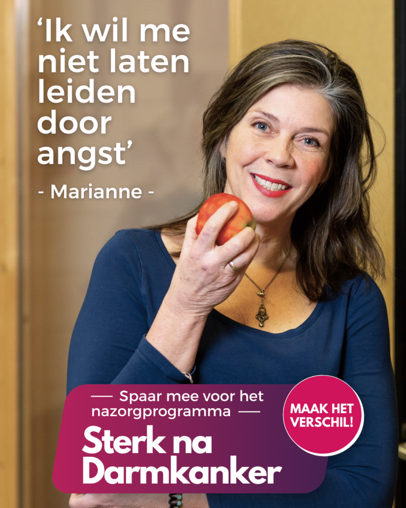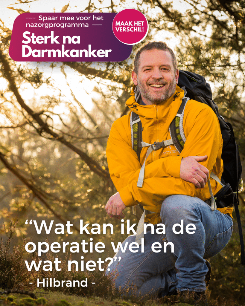 4 november 2024 ‘We beleefden deze rollercoaster allebei anders’ 25 oktober 2024 Boordevol informatie en inspiratie: ons magazine Voor elkaar! 25 oktober 2024 Vermoeidheid wordt chronisch probleem voor 1 op de 3 ex-kankerpatiënten 17 oktober 2024 Leven tot het laatst 2 oktober 2024 Red levens: Verlaag het bevolkingsonderzoek darmkanker naar 50 jaar 1 oktober 2024 ‘Artsen en patiënten hebben vaak een ander doel’ 25 september 2024 Dag van de uitgezaaide darmkanker 18 september 2024 Word jij de nieuwe bestuursvoorzitter van Stichting Darmkanker? 6 september 2024 ‘Ik moest alles zelf uitvinden en op zoek naar antwoorden’ 22 augustus 2024 Iedereen AAN, tegen kanker 18 augustus 2024 ‘Wat kan ik na de operatie wel en wat niet?’ 14 augustus 2024 Download de Hoge Nood app! 8 augustus 2024 ‘Ik wil me niet leiden door angst’ 1 augustus 2024 ‘Zonder tennis had ik hier misschien niet gestaan’ 25 juli 2024 Heb jij onze Darmkanker app al gedownload? 123456...10
